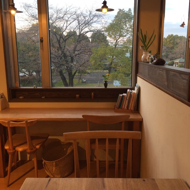 木工房すえひろ2階のkononの窓辺から見える桜が