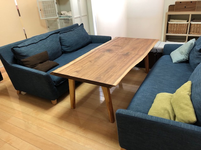 高さは既存のソファに合わせる為、脚をカットし、通常より低くしてあります。