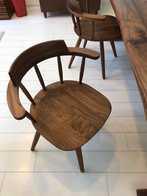 肘付きの椅子もウォールナットをお選びいただきまして、家具全体に統一感がありますね。