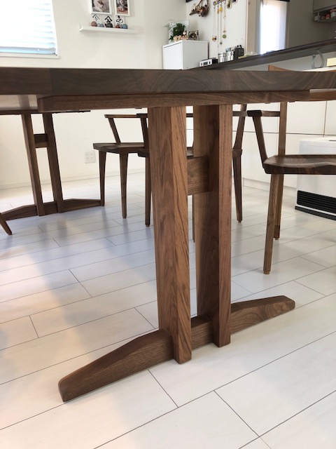 ダイニングテーブル:ウォールナット 耳付き5枚接ぎ オイル仕上げ 帆立脚