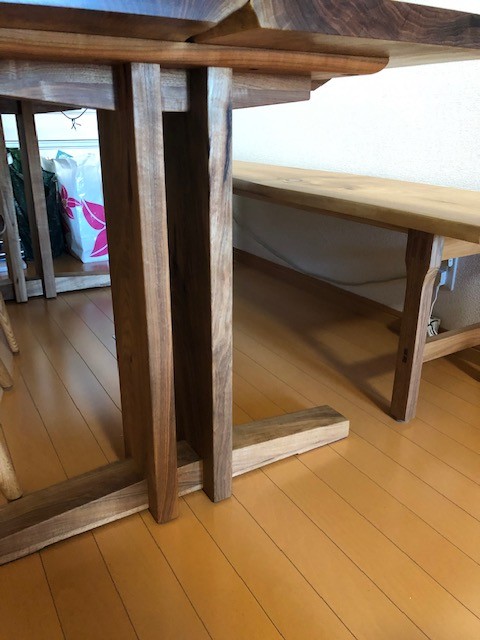 ベンチも胡桃の一枚板で製作しました。雰囲気も合っていてステキですね。