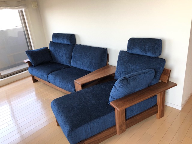 ウォールナット材を使った2.5人掛けソファとカウチソファです。