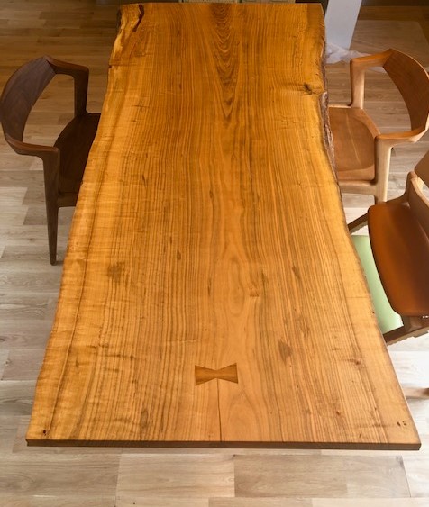希少な山桜の一枚板を使ったオイル仕上げのダイニングテーブルです。