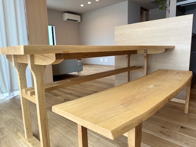 水楢(みずなら)のテーブルとベンチを納品させていただきました。