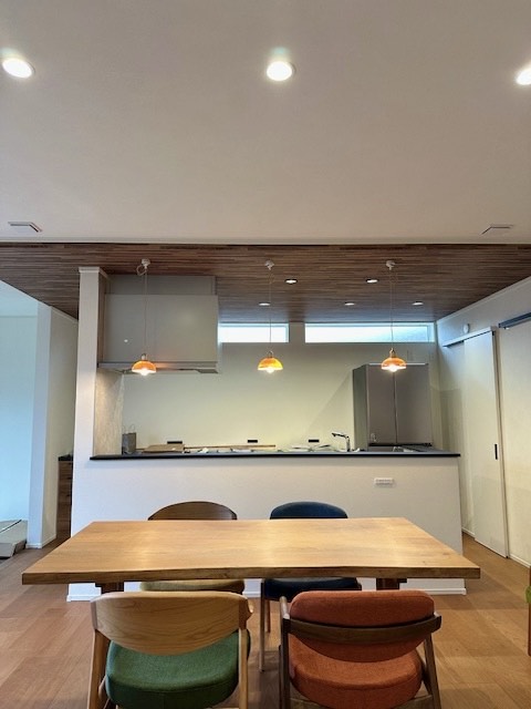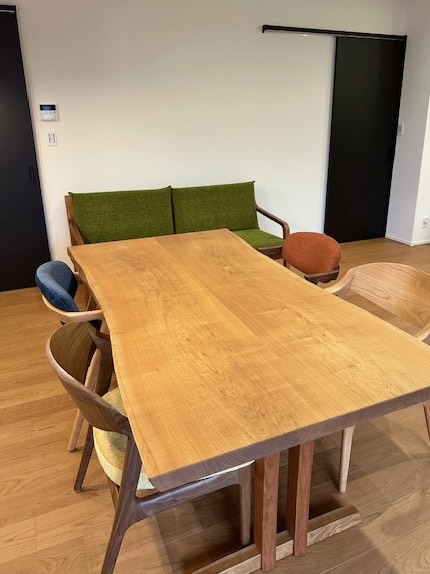 素晴らしいリビング空間、山桜のテーブルを中心に