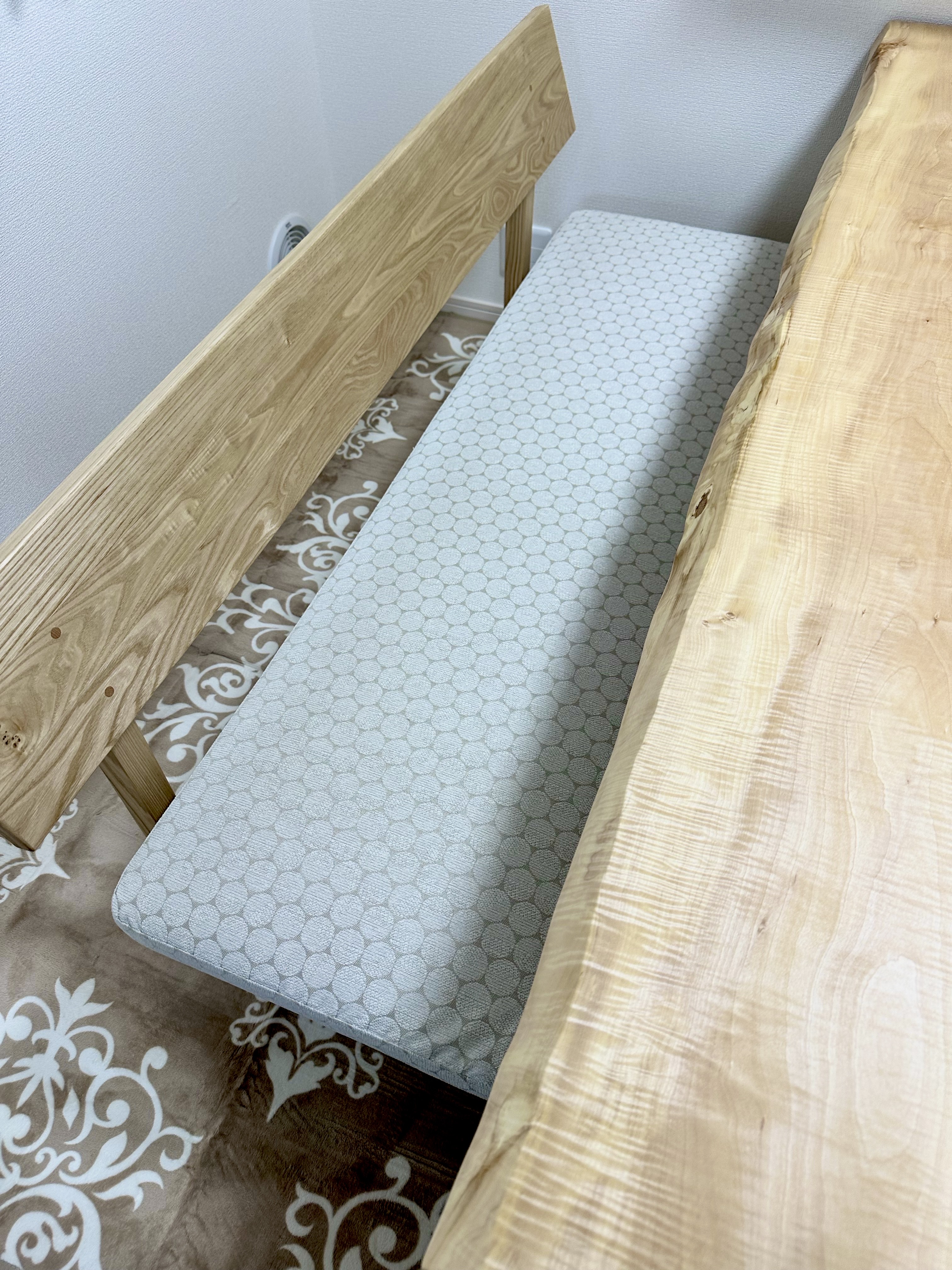 そしてたも材の背付きベンチの組み合わせ