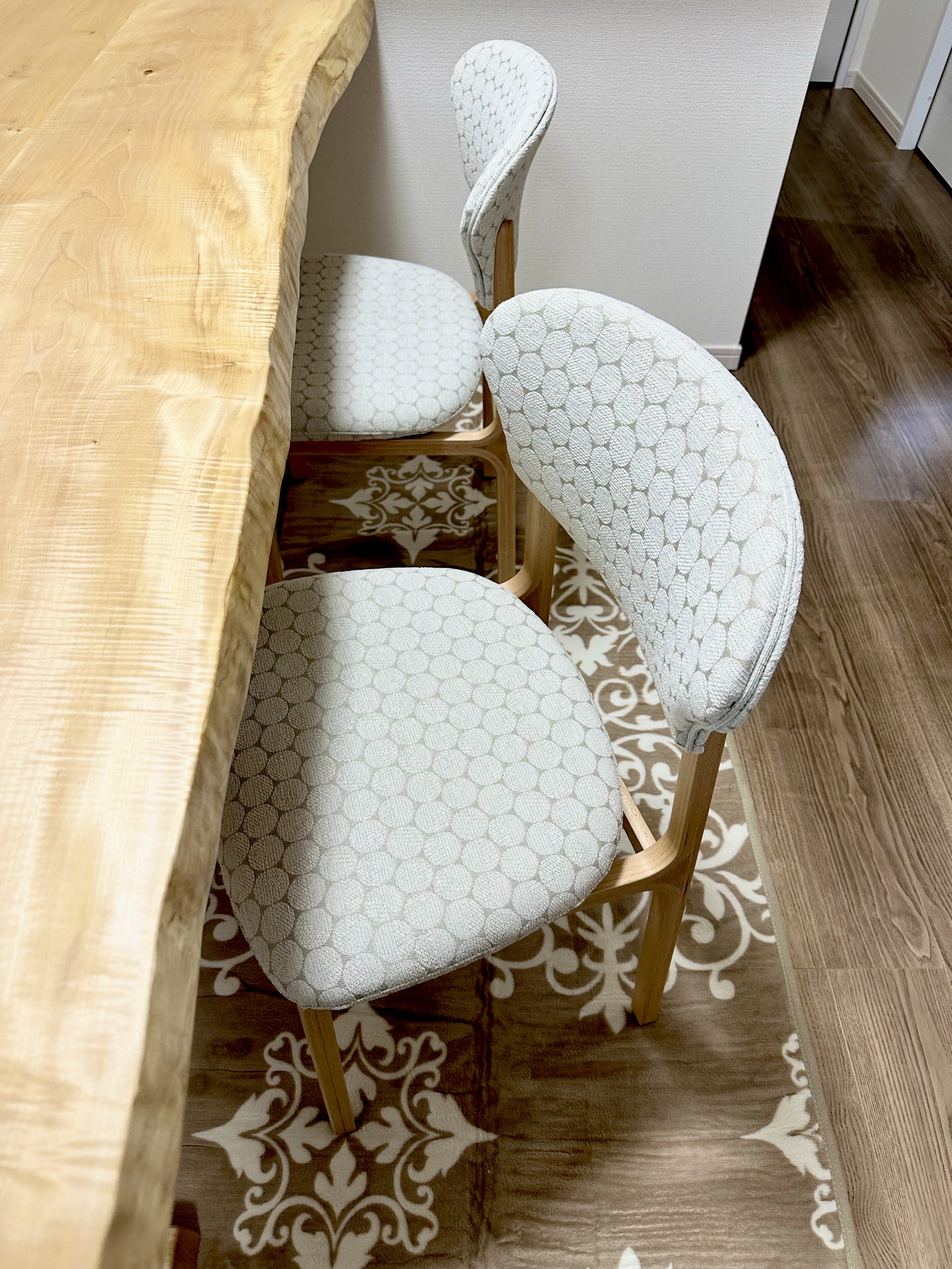 椅子、ベンチの張地をお気に入りの張地で統一されたバランス