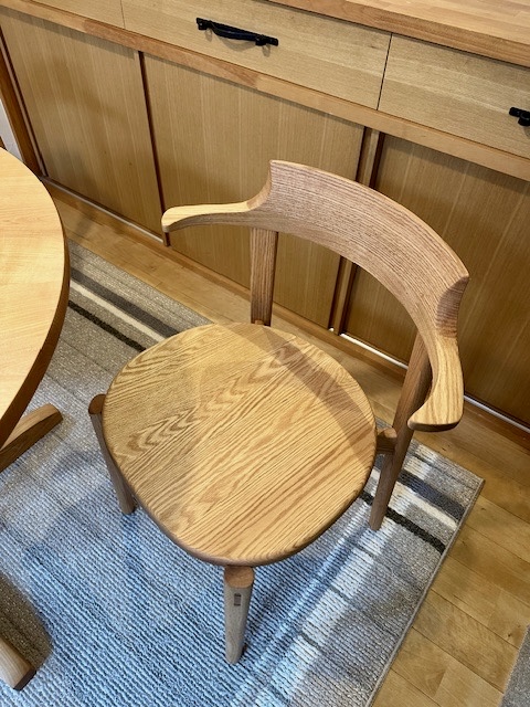 山桜の丸テーブルと、オーク材の椅子を納品させていただきました。 木の温もりが感じられる素敵な空間に 天然木の家具が自然と溶け込んだ暮らしの風景 丸テーブルは囲みやすく、家族が集まり、会話が弾むかたち。 オーク材の椅子は、 収まりの良い座面の大きさと曲げ木の技法による背もたれの曲線が 心地よく身体にフィットして安定感があります。 時間とともに深まる色合いの変化も、これからの楽しみのひとつです。 このテーブルを囲む笑顔の時間が、これからもたくさん生まれますように。