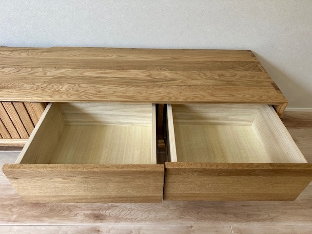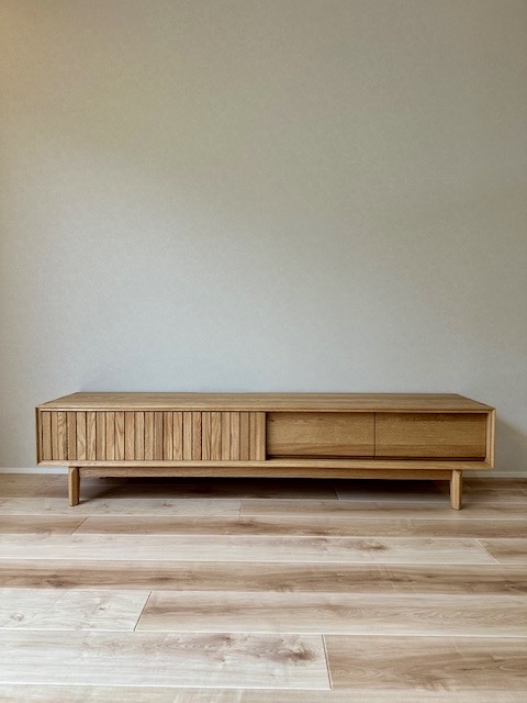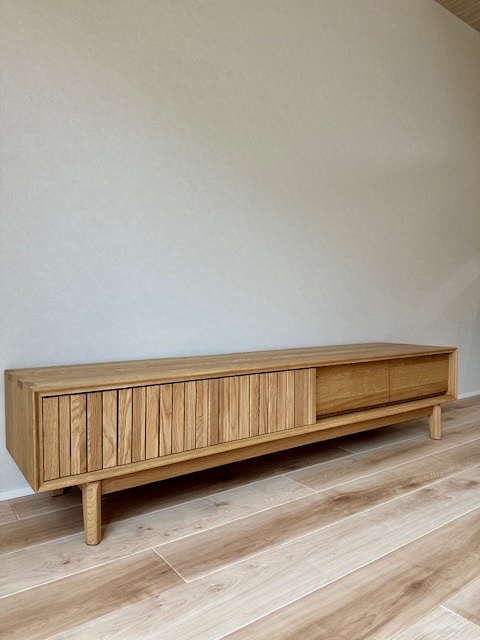 オーク材の引き戸のTVボードを納品しました。