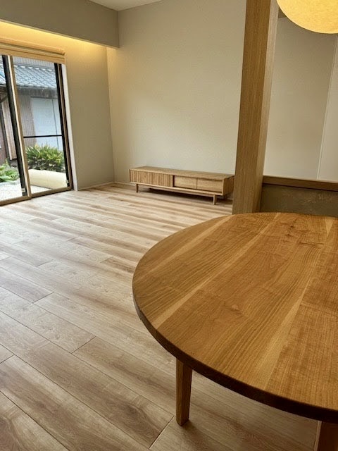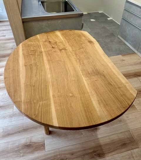 山桜で製作した半丸ダイニングテーブルと