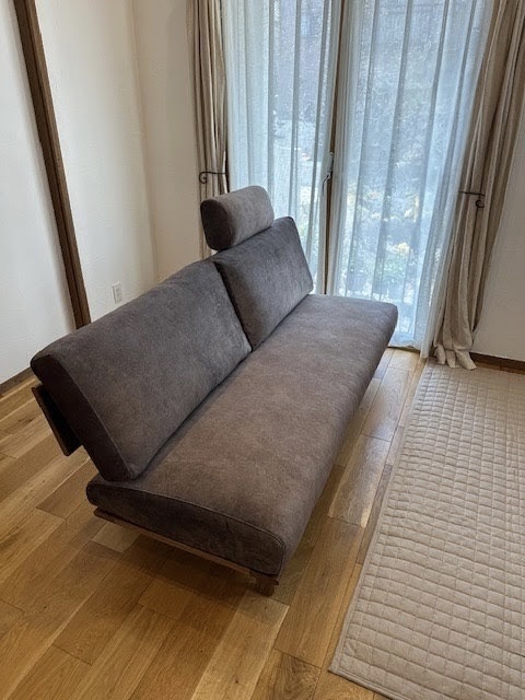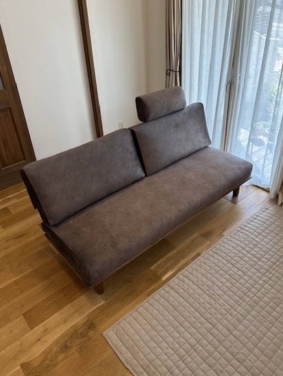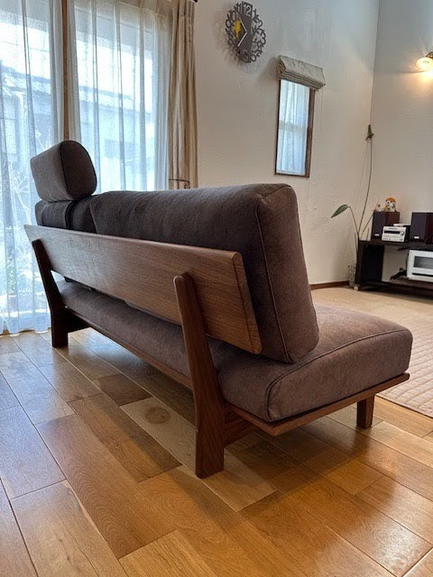 お店でも不動の支持を誇る アームレスソファを納品させていただきました。 お選びいただいたチャコールグレーの張地と 高級感あるウォールナット材の組み合わせが とてもお洒落で洗練されています。 アームレスデザインは、出入りのしやすさだけでなく、 空間を広く見せる効果があり、圧迫感を与えません。 また、ソファの両側にアームがない分 座面が広くとれるため、2〜3人で座っても体勢を変えやすく、 家族でリラックスした時間を過ごすのにぴったりです。 無垢のソファに座って心と身体をリラックス そんな癒しのひとときをお過ごしいただけますように。