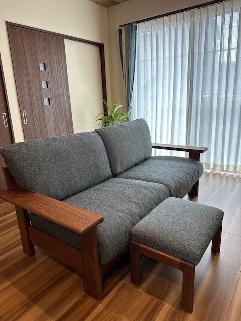 ウォールナットの両肘ソファをオーダー製作させていただきました。