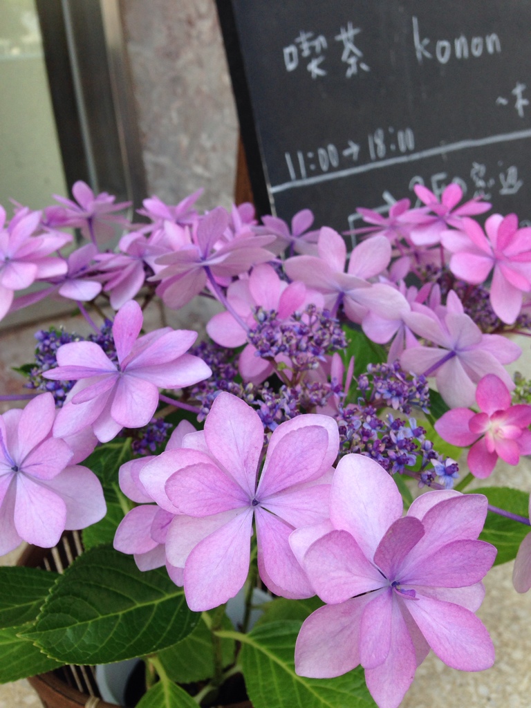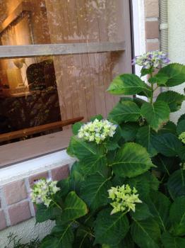 お店の前のアジサイも、咲いてきました。