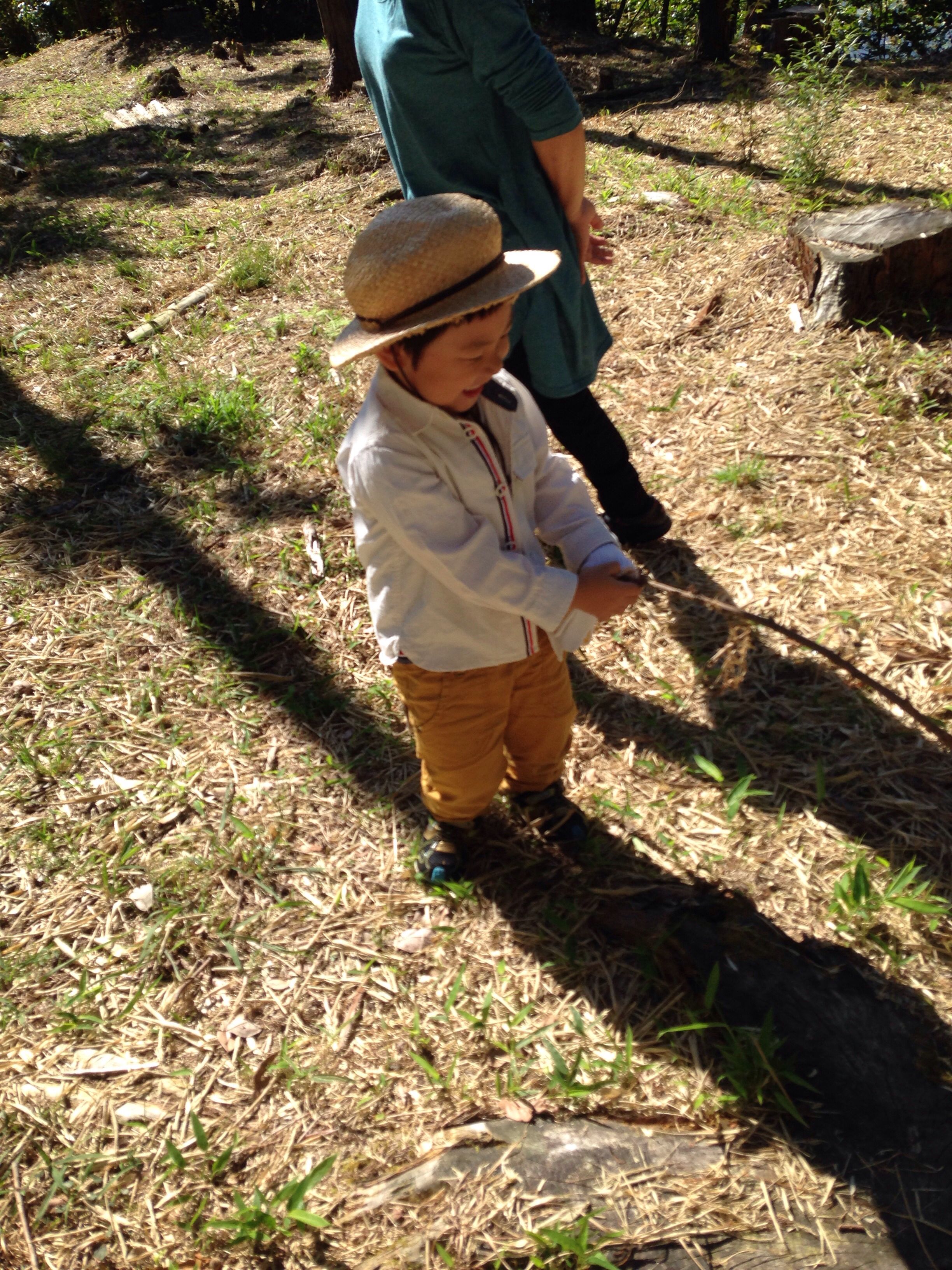 男の子と木の棒はセットなのですね・笑