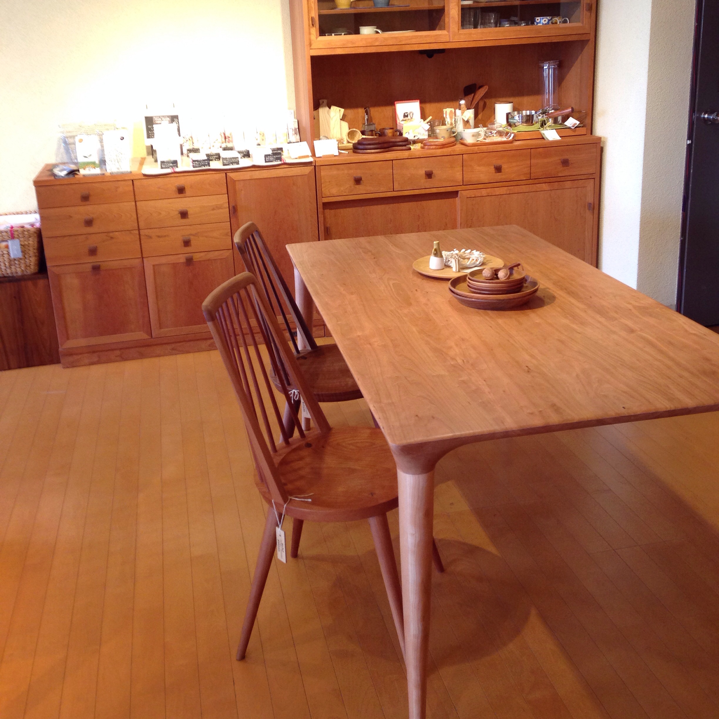 厚みのある山桜のダイニングテーブルが並びましたよ