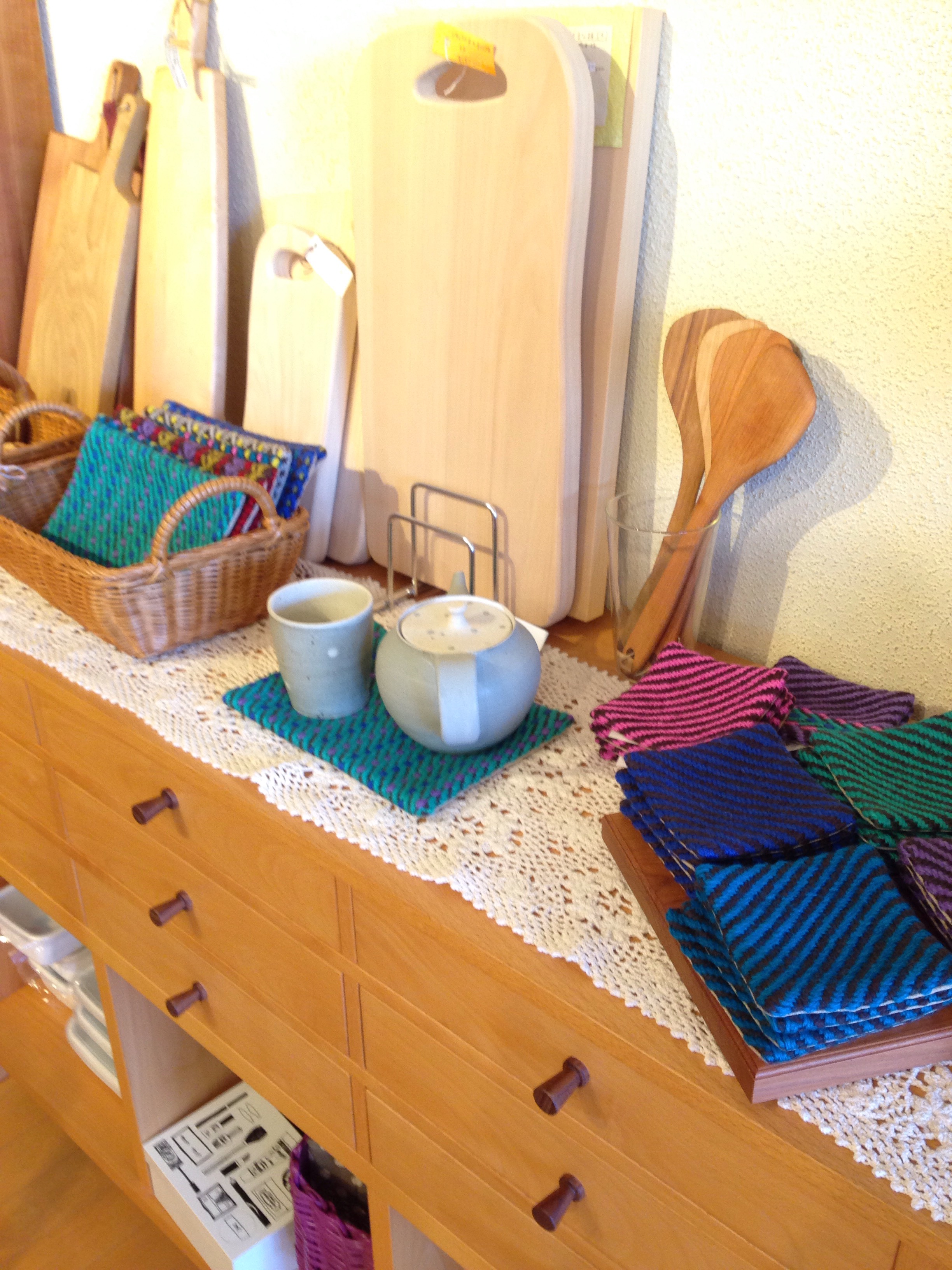 手織りのコースターや、