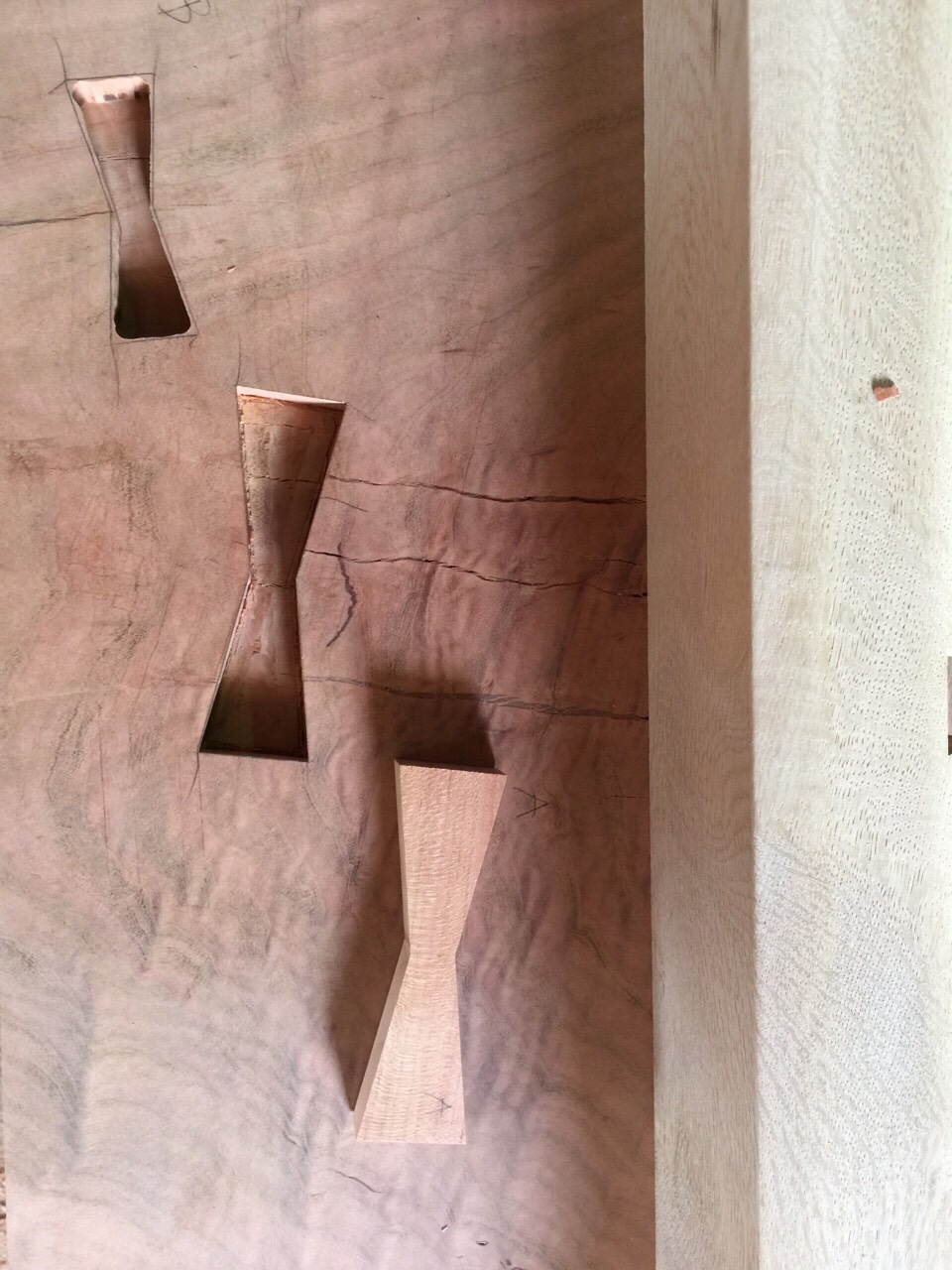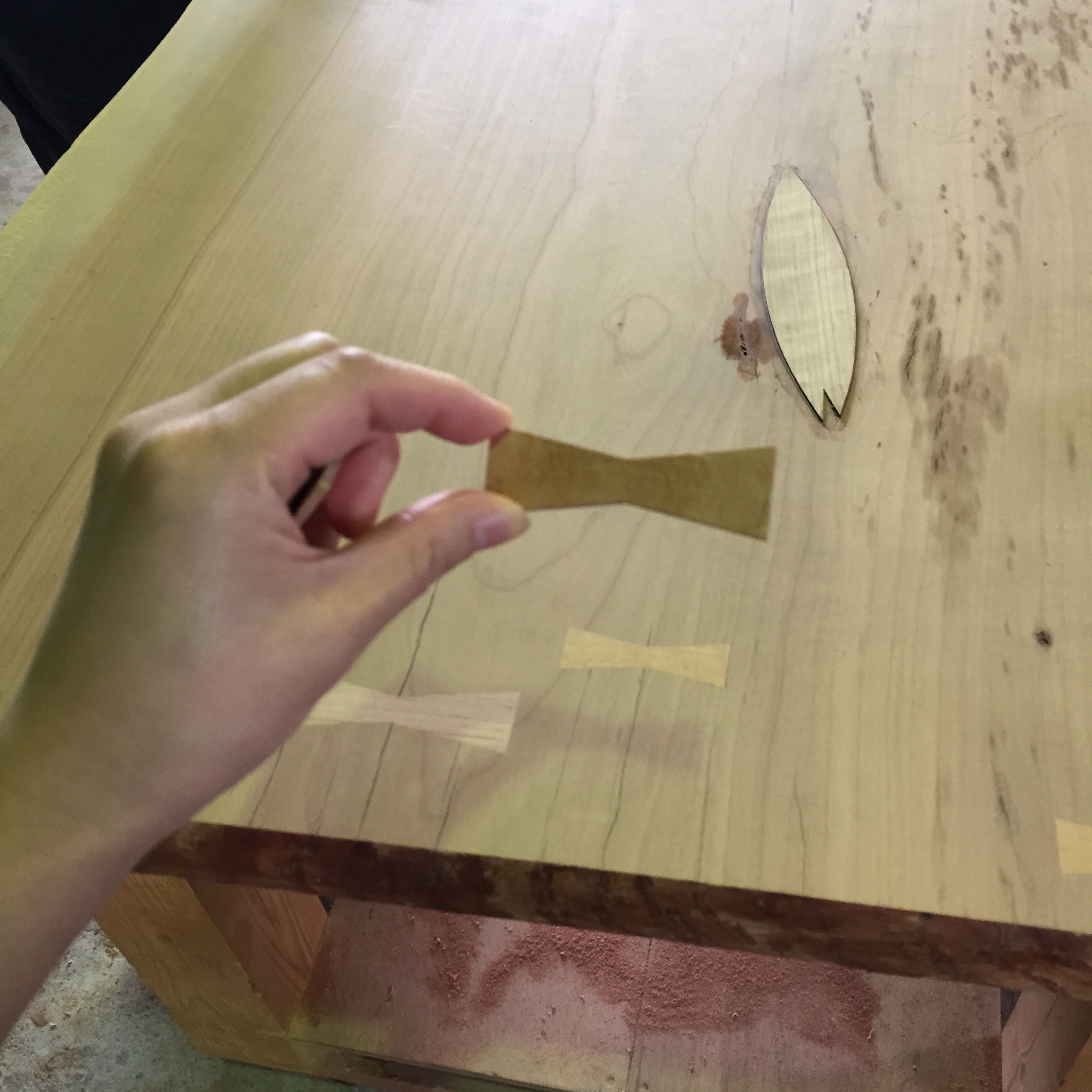 無垢板を見ながら合わせていき、