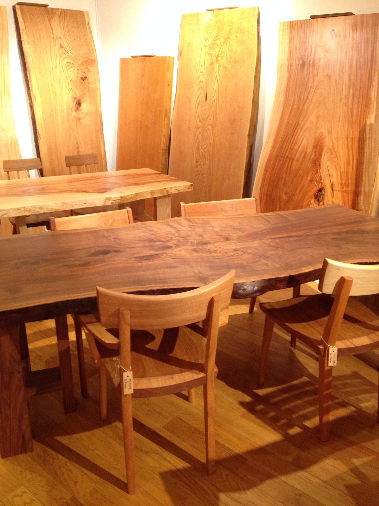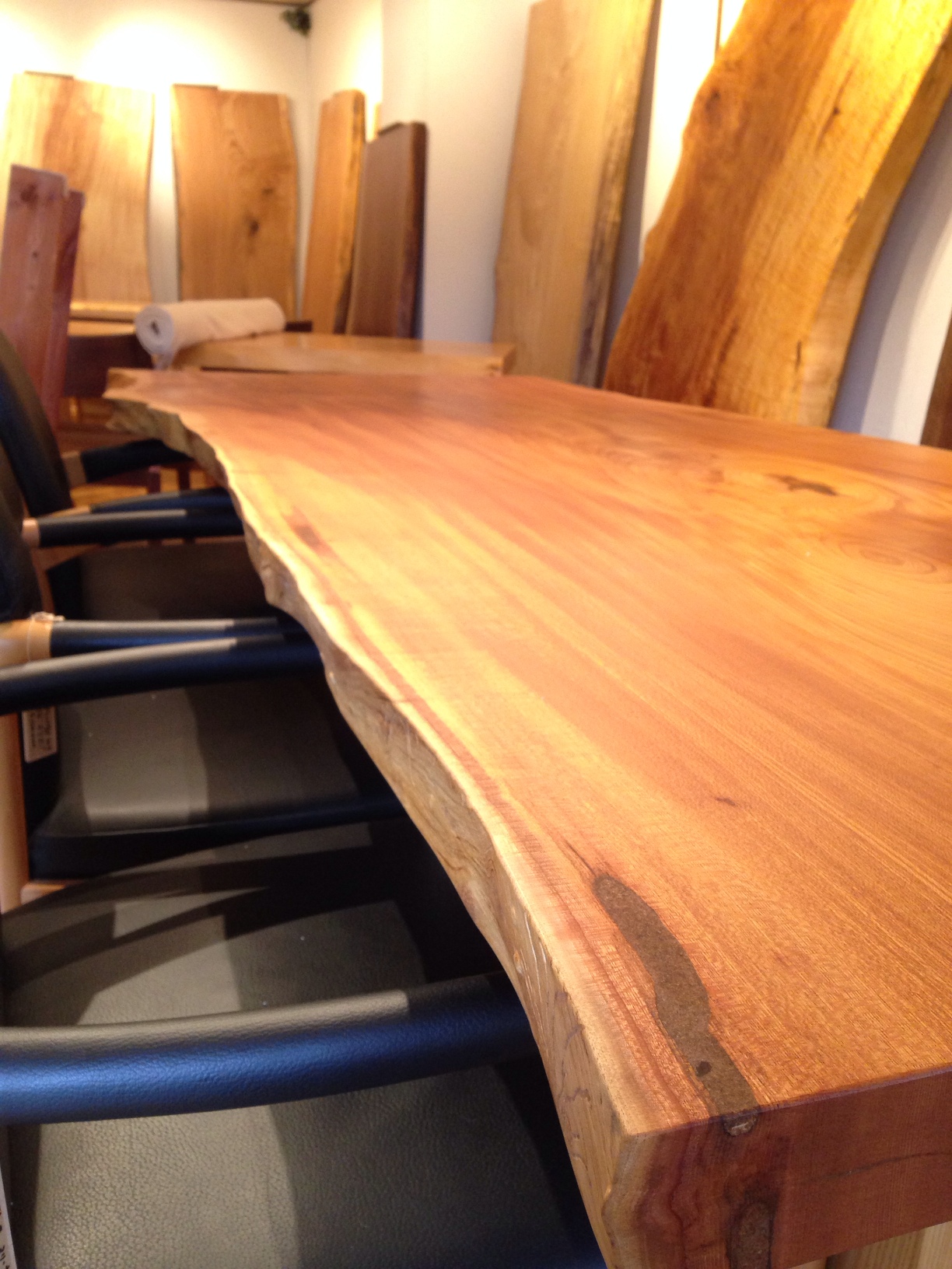 たくさんの一枚板が並んでいますよ。