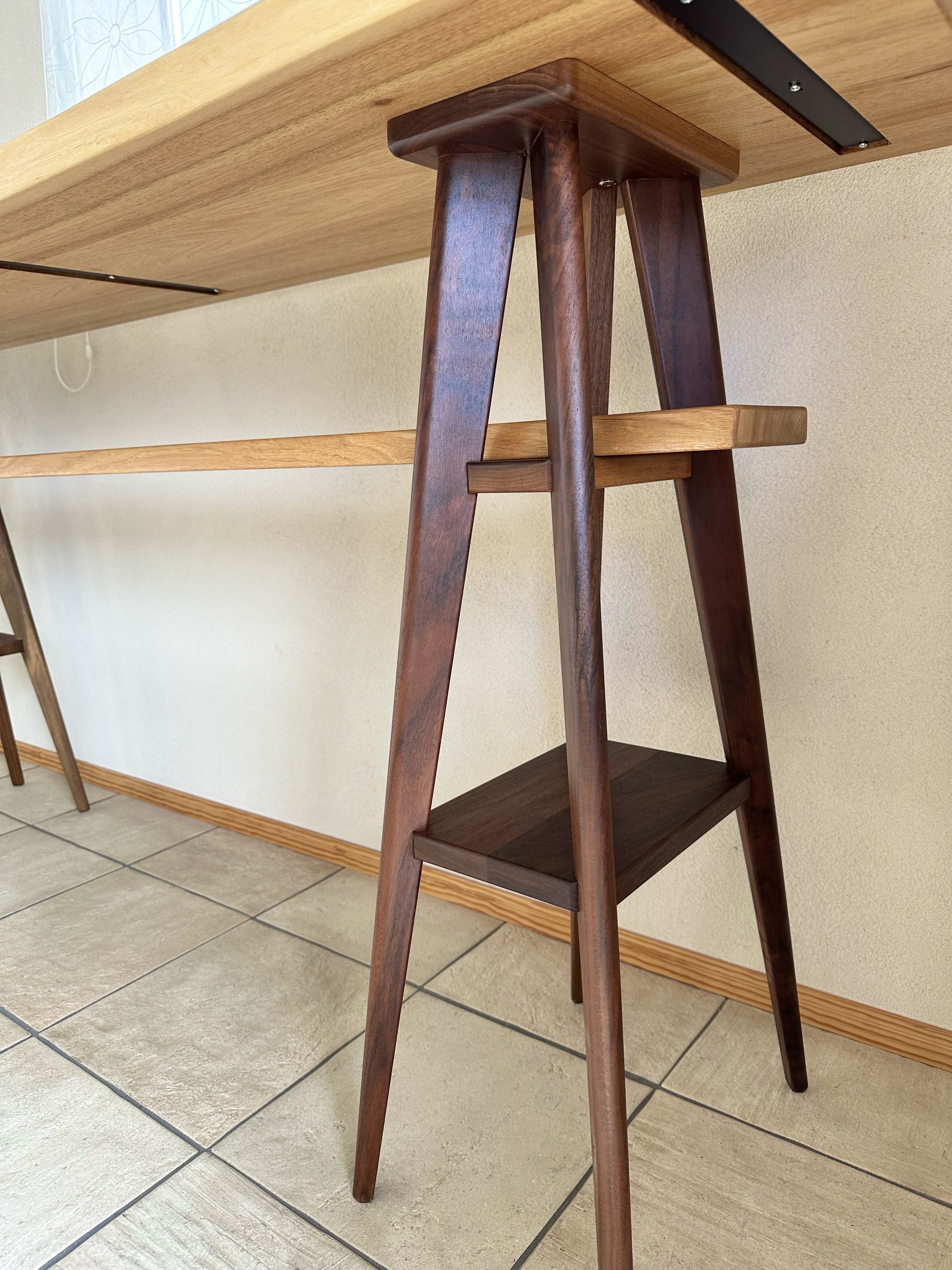 くるみの木の優しい色味の天板にウォールナット材の脚が良いアクセント