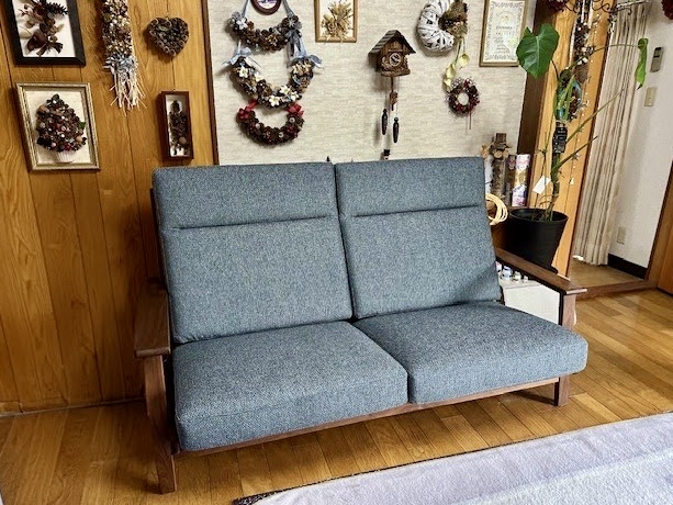 ウォールナット無垢材のハイバックソファを納品させていただきました。